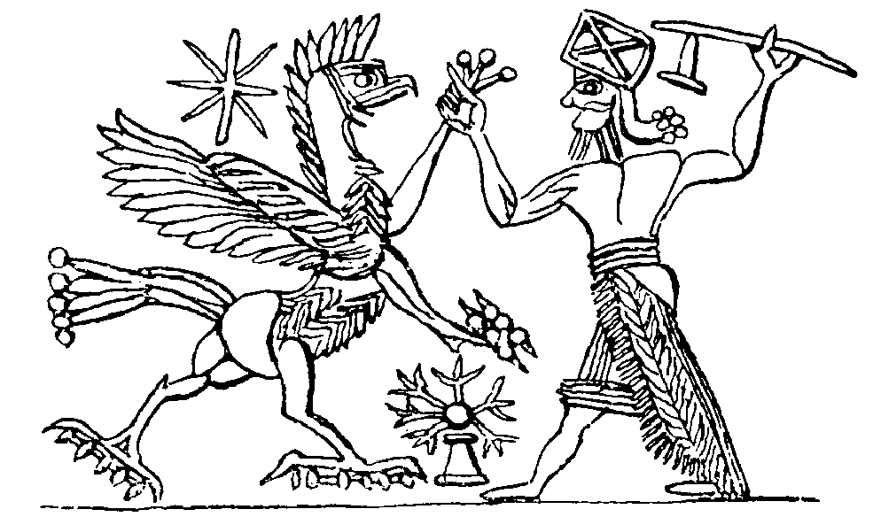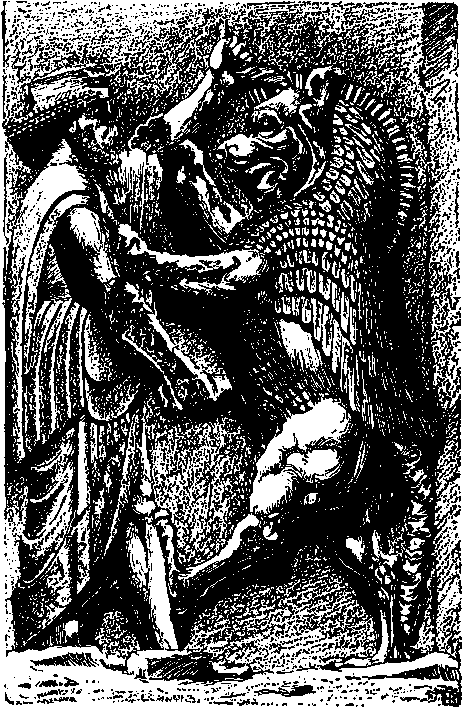 Persian sculpture from c. 600 BC, showing Thor/Andara as the sun hero Ahura Mazda - 'the sage of the sun' - subduing the Dragon enemy as Ahriman (called in the British Edda Hrimni)