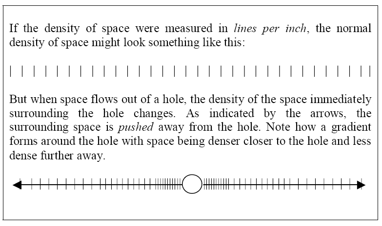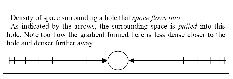 Here are diagrams from Russel Moon’s book The End of the Concept of Time. One of Moon’s diagrams shows how space forms a density gradient around a central hole — the proton. The vortex lines compress inward, forming a coherent spiral toward the axis.